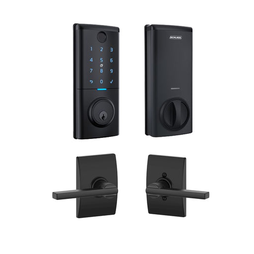 Overview What is included: 1x Schlage Ascent Fingerprint Smart Deadbolt Black 1x Schlage Century Latitude Passage Lever Set Matt Black Seamlessly ...